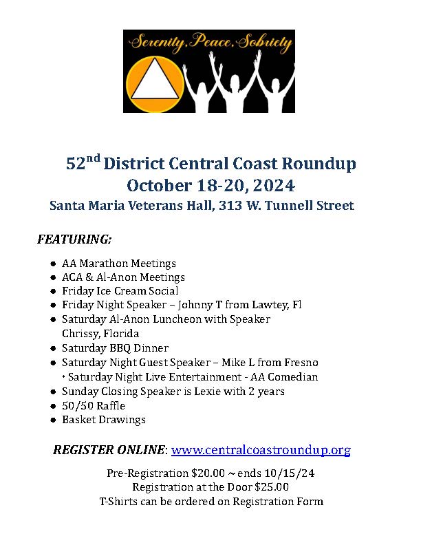 This calendar contains AA related events for District 22 of Alcoholics Anonymous. All events are reviewed by CCCOI volunteers and are accurate to the best of our knowledge. If there are any corrections needed please contact us. If you would like to add an event please send it to us via the Event Submission form.