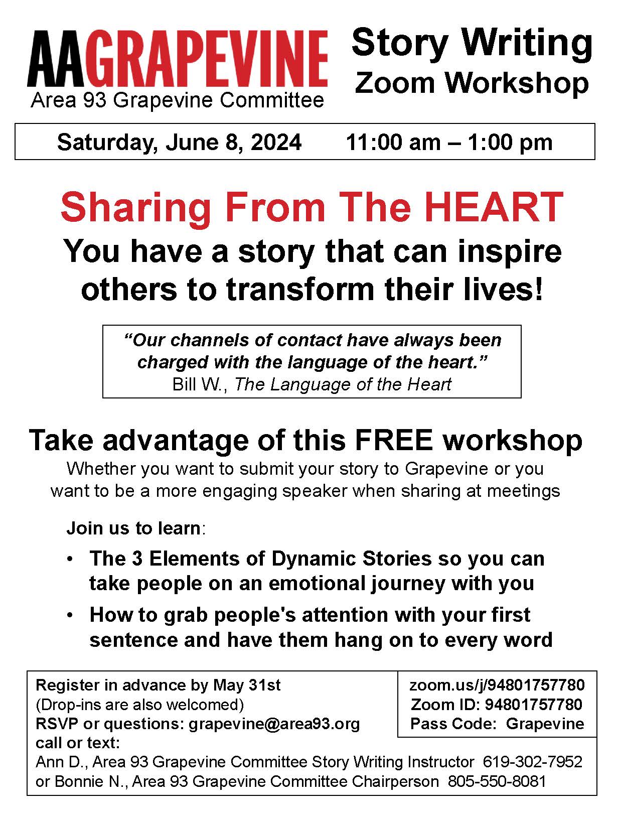 AA Grapevine Story Writing Zoom Workshop