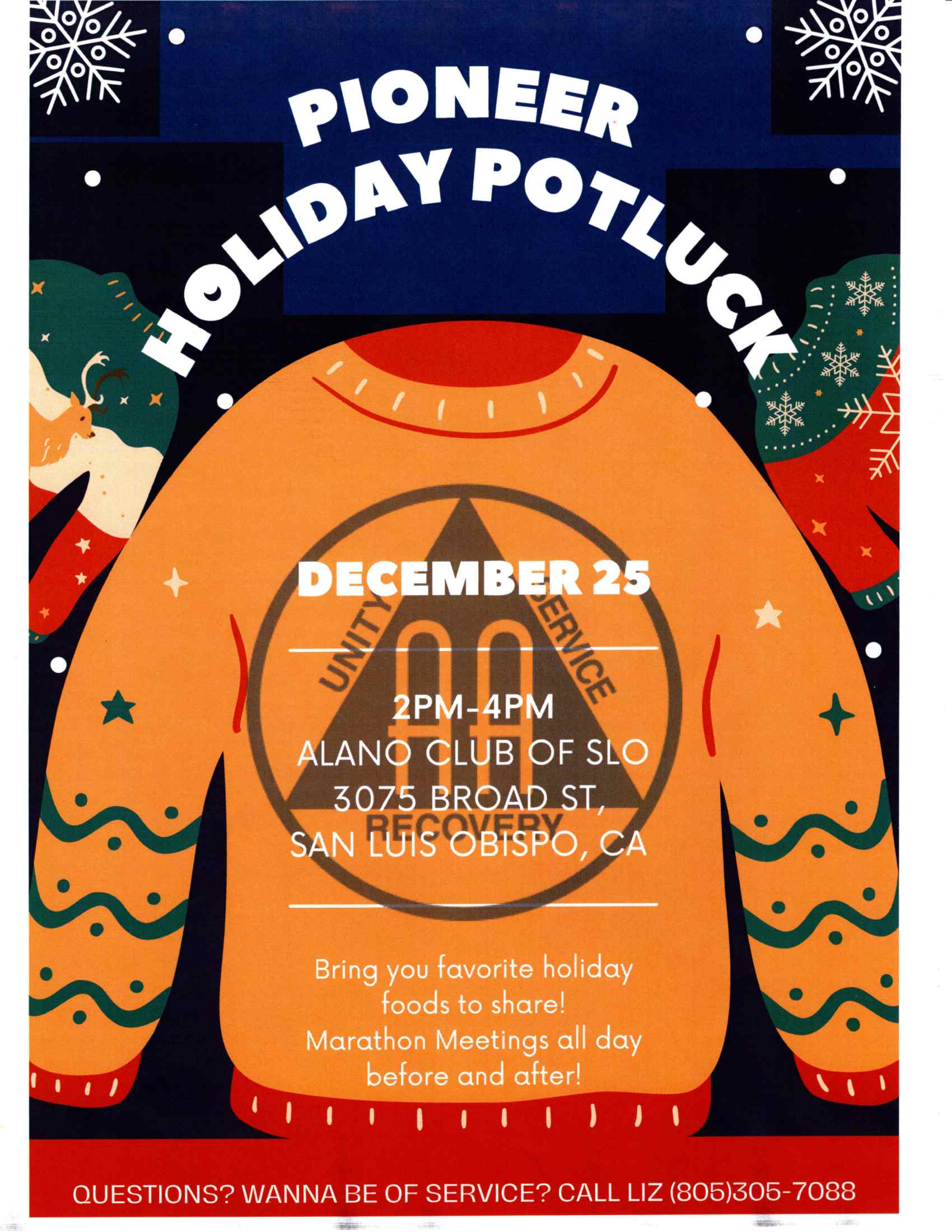 Potluck 2-4pm Bring your favorite Holiday foods to share! Marathon Meetings all day, before and after!